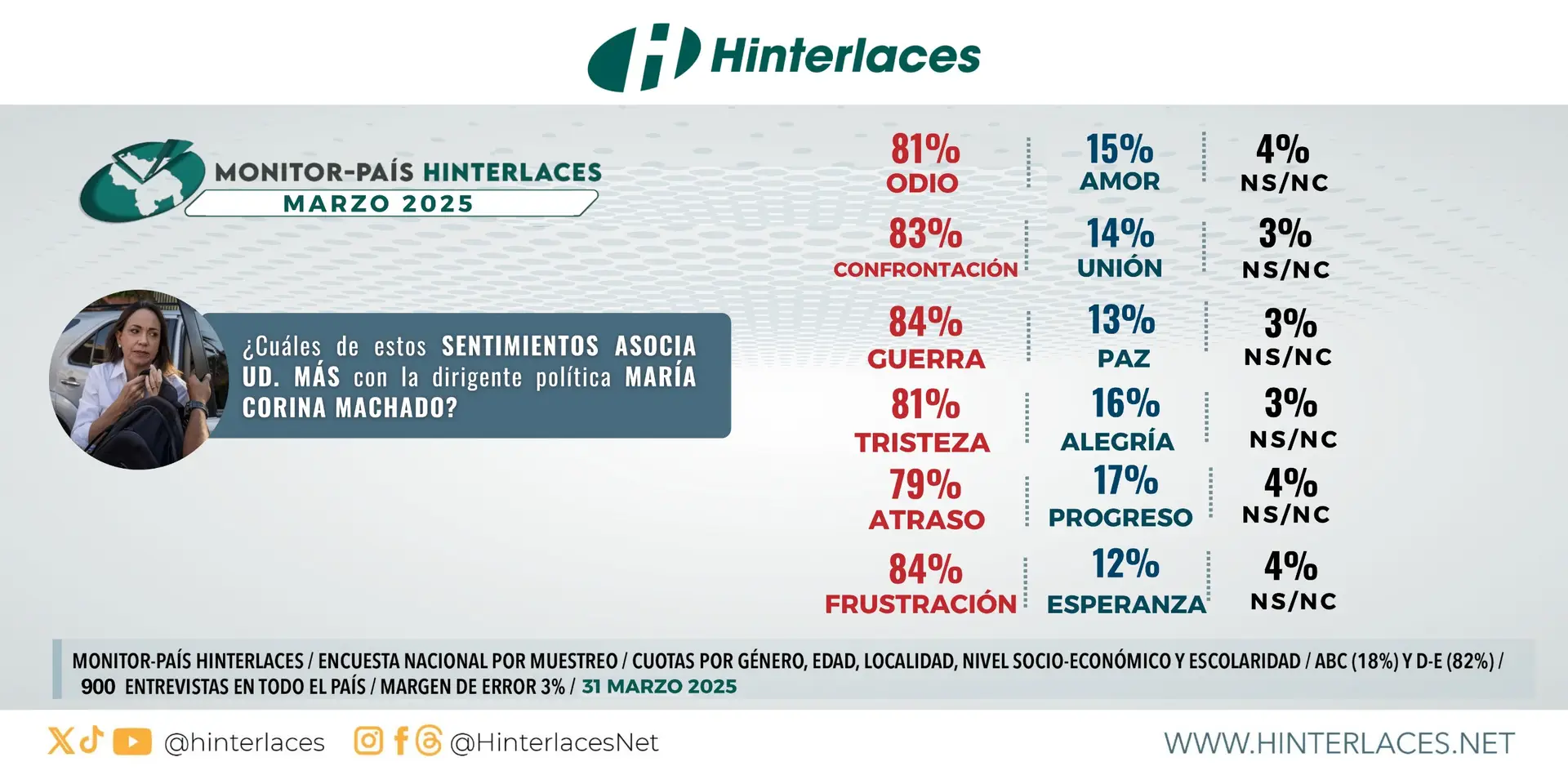 91% de los venezolanos tiene una opinión desfavorable de María Corina Machado