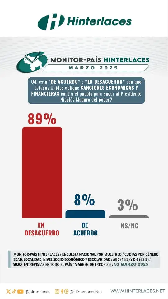65% de los encuestados tiene una opinión POSITIVA sobre la gestión de Nicolás Maduro